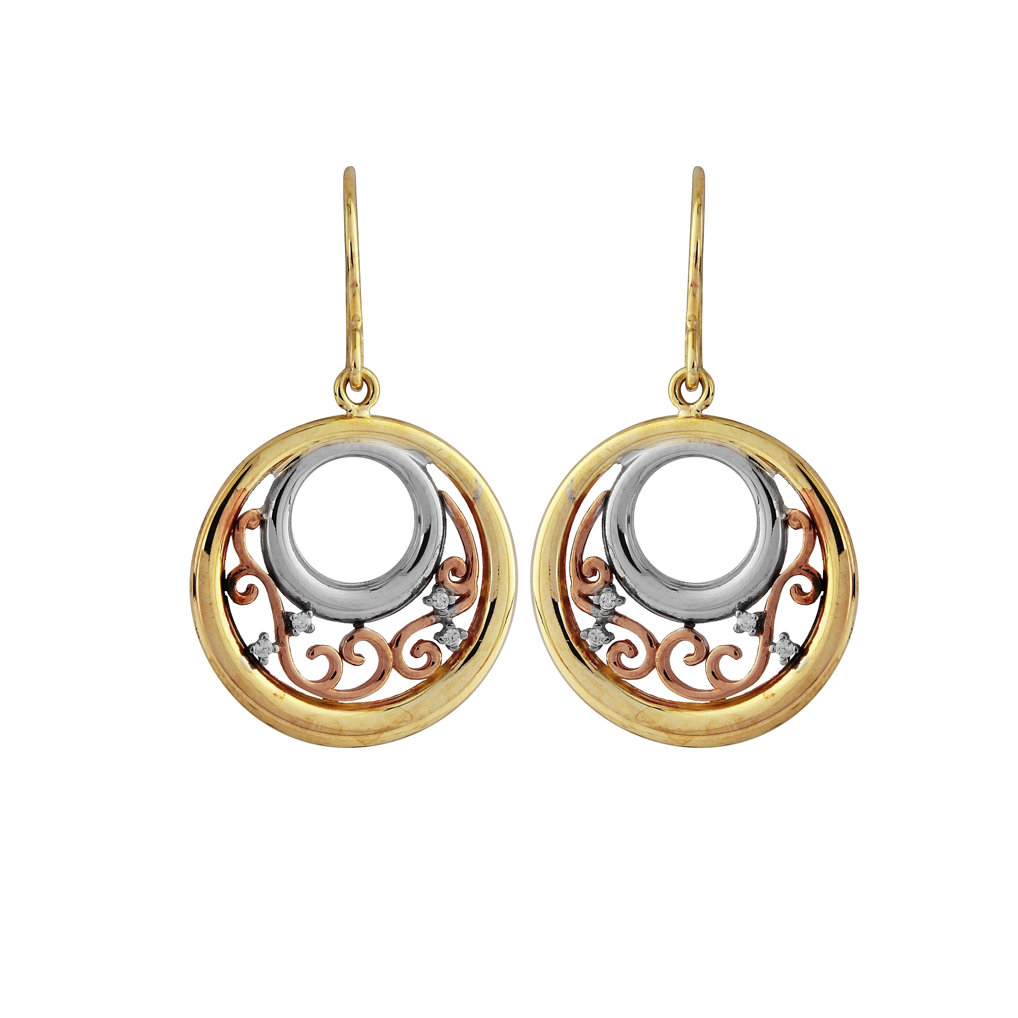 9ct Yellow, White & Rose Gold CZ Circle Earring with a hook wire
