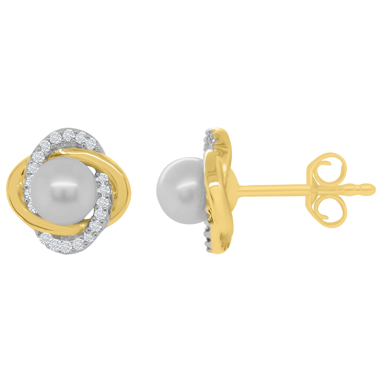 9ct Yellow Gold Pearl 1.76 & Diamond 0.12ct drop earring