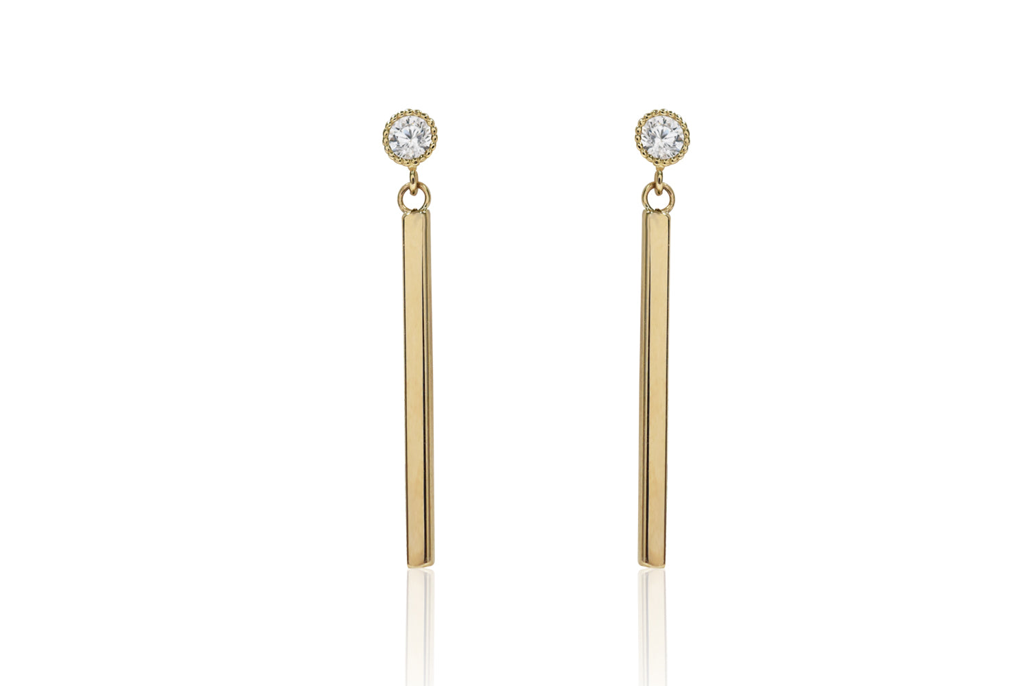 9ct Y/G long straight bar with cz at the top