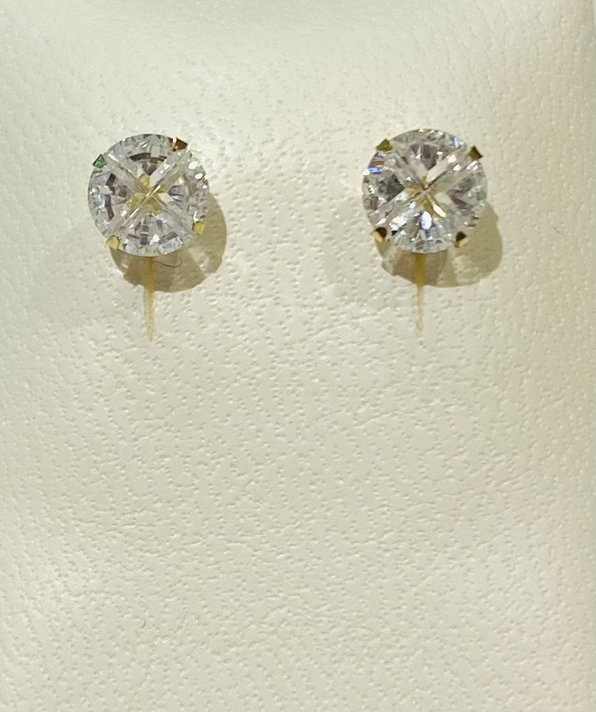 9ct Yellow gold 6mm round cross inset pattern CZ earrings