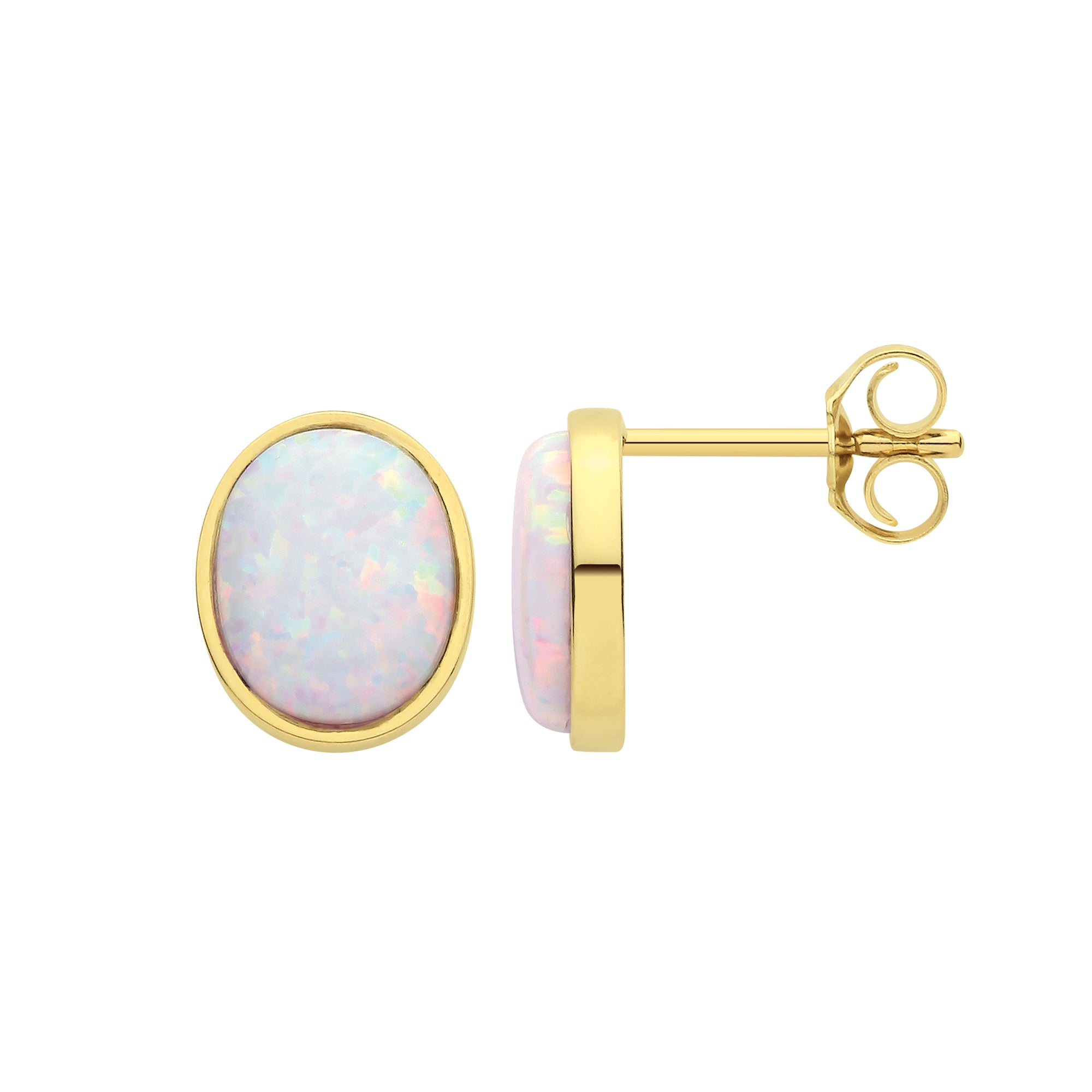 9ct yellow gold C.Opal rub over studs. 10x8mm