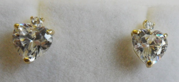 9ct Yellow gold Heart Shaped CZ studs