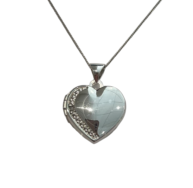 9ct White gold heart locket Diamond 0.005ct