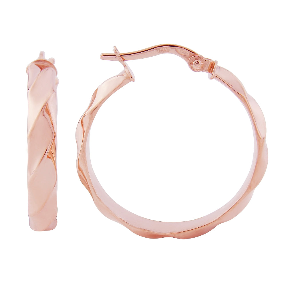 9ct Rose Gold Twisted Flat Inside 20mm Round Hoop