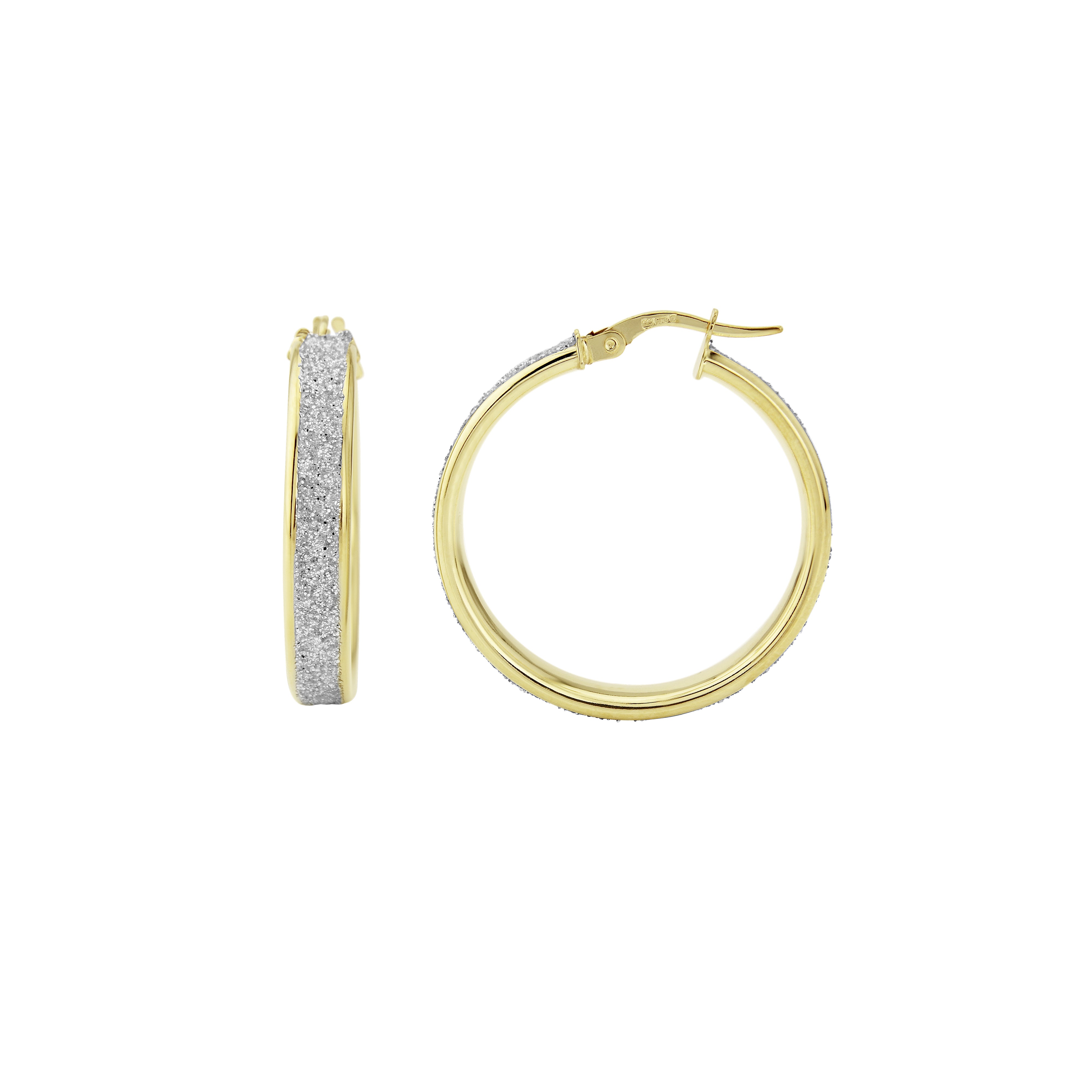 9ct Yellow gold 25mm hoop with a glitter affect centre