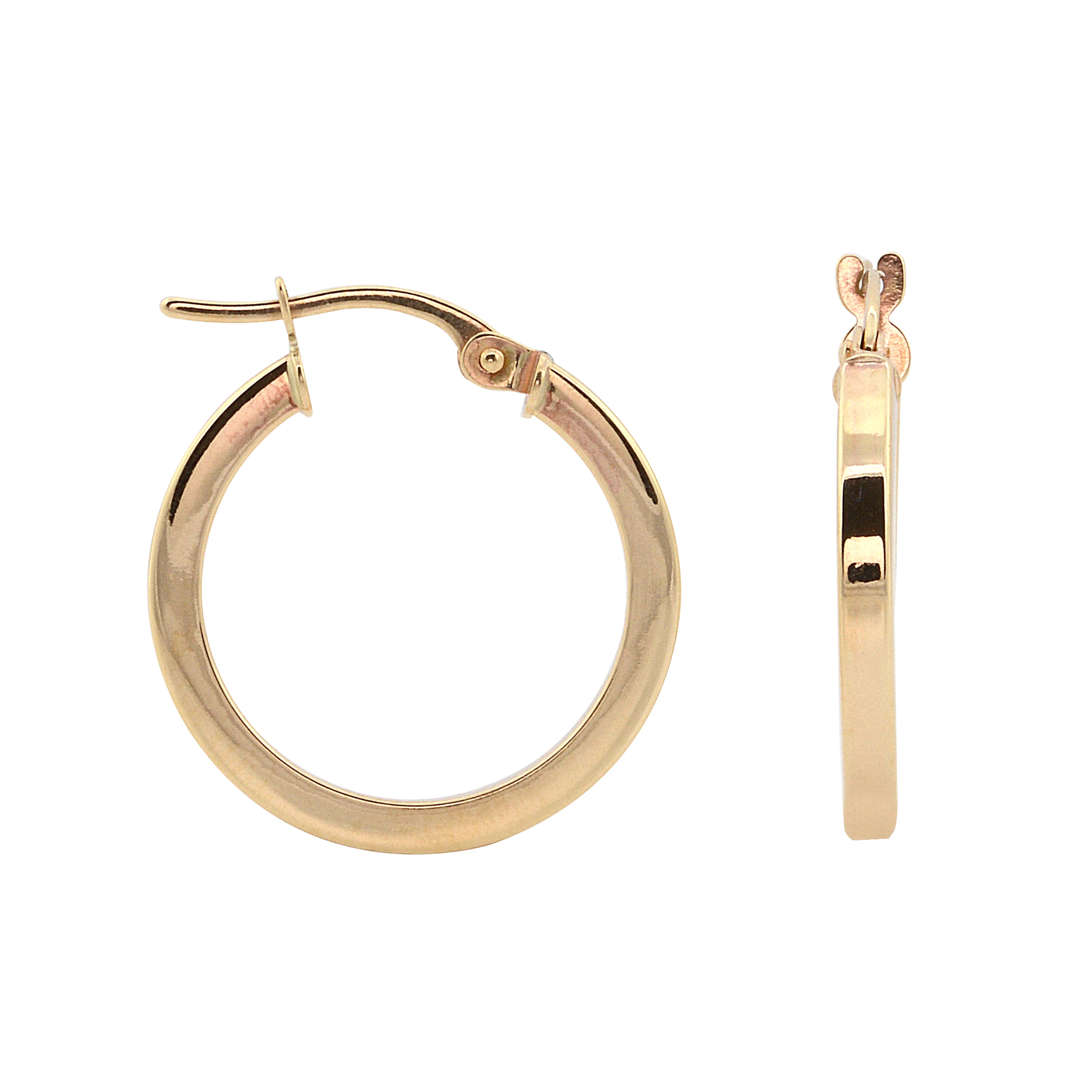 9ct Yellow gold 15mm square profile hoops 2mm wide