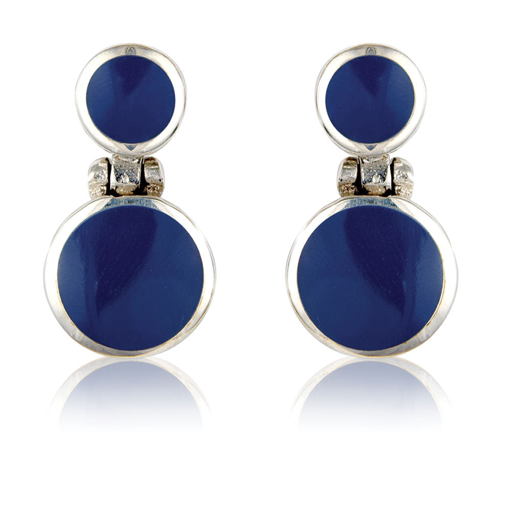 Silver Lapis Studs, Small & large circle 15mm depth