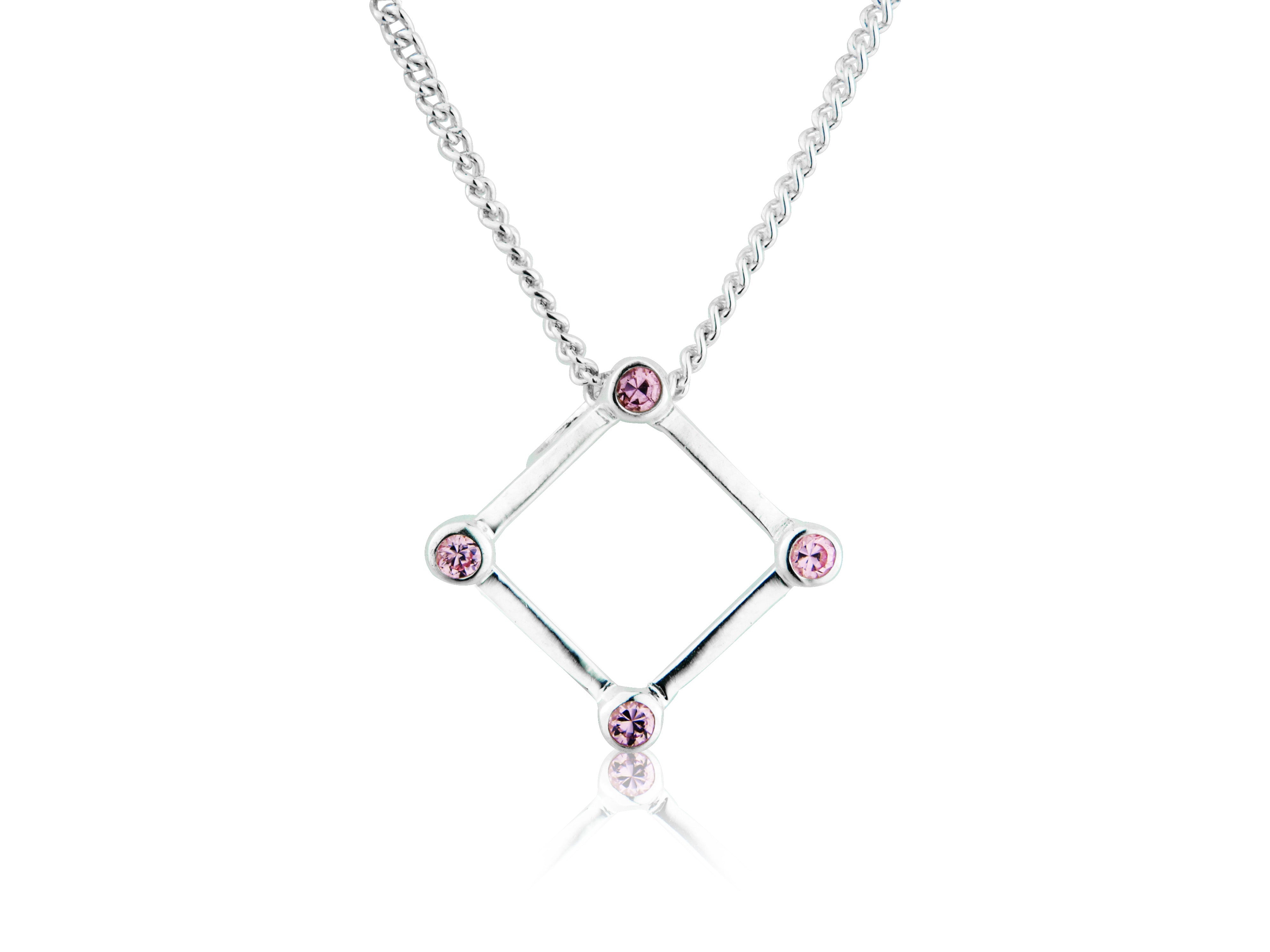 Silver CutOut Dia Shape Pend, Pink CZ with chain