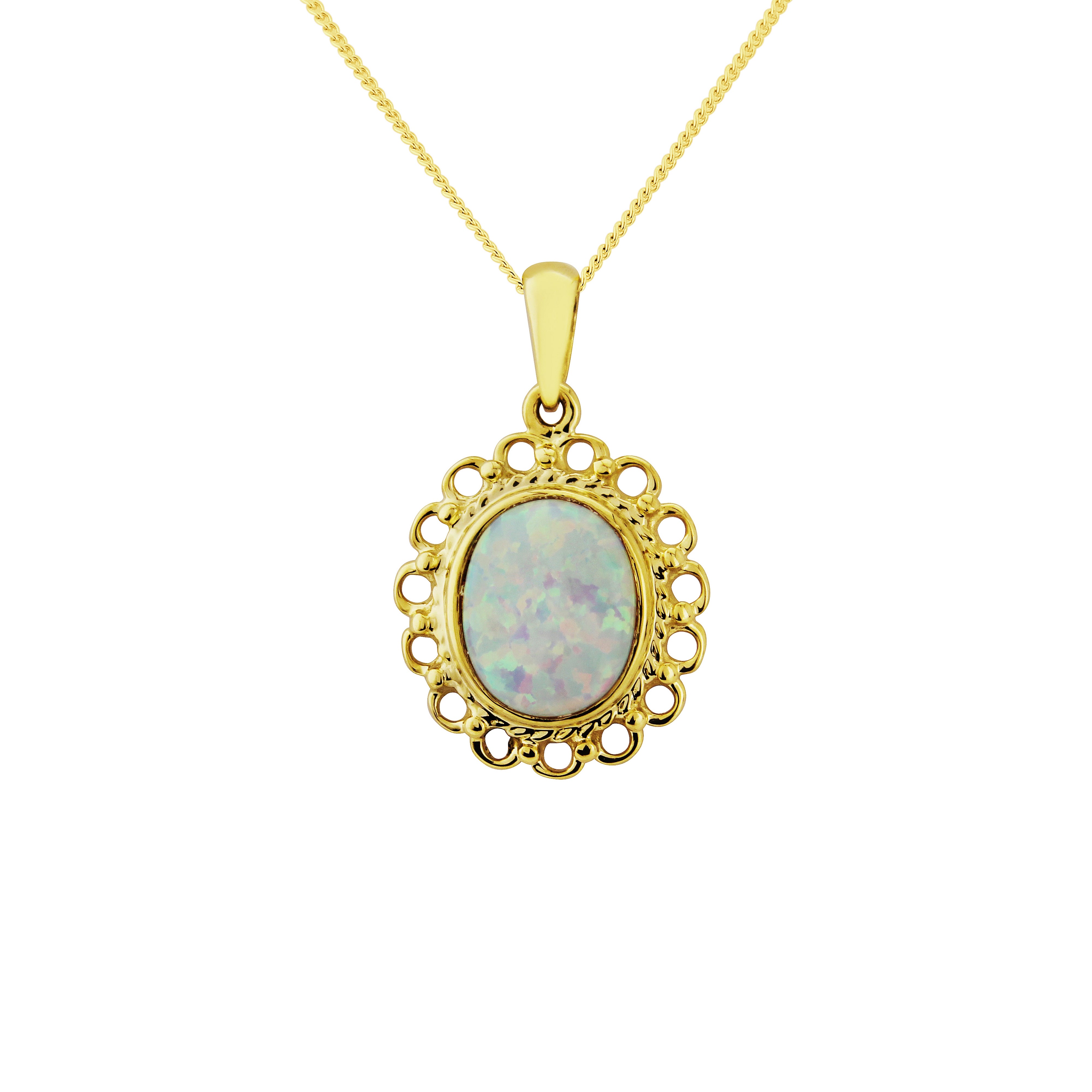 9ct Yellow Gold Flower design C.Opal Pendant (R409Y,E409Y) 9X7