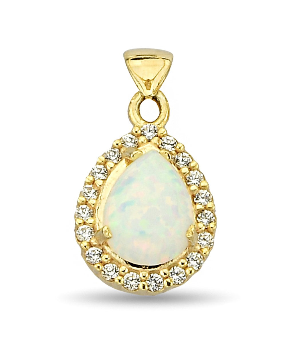 9ct Yellow gold, C.opal and cz pear shape pendant