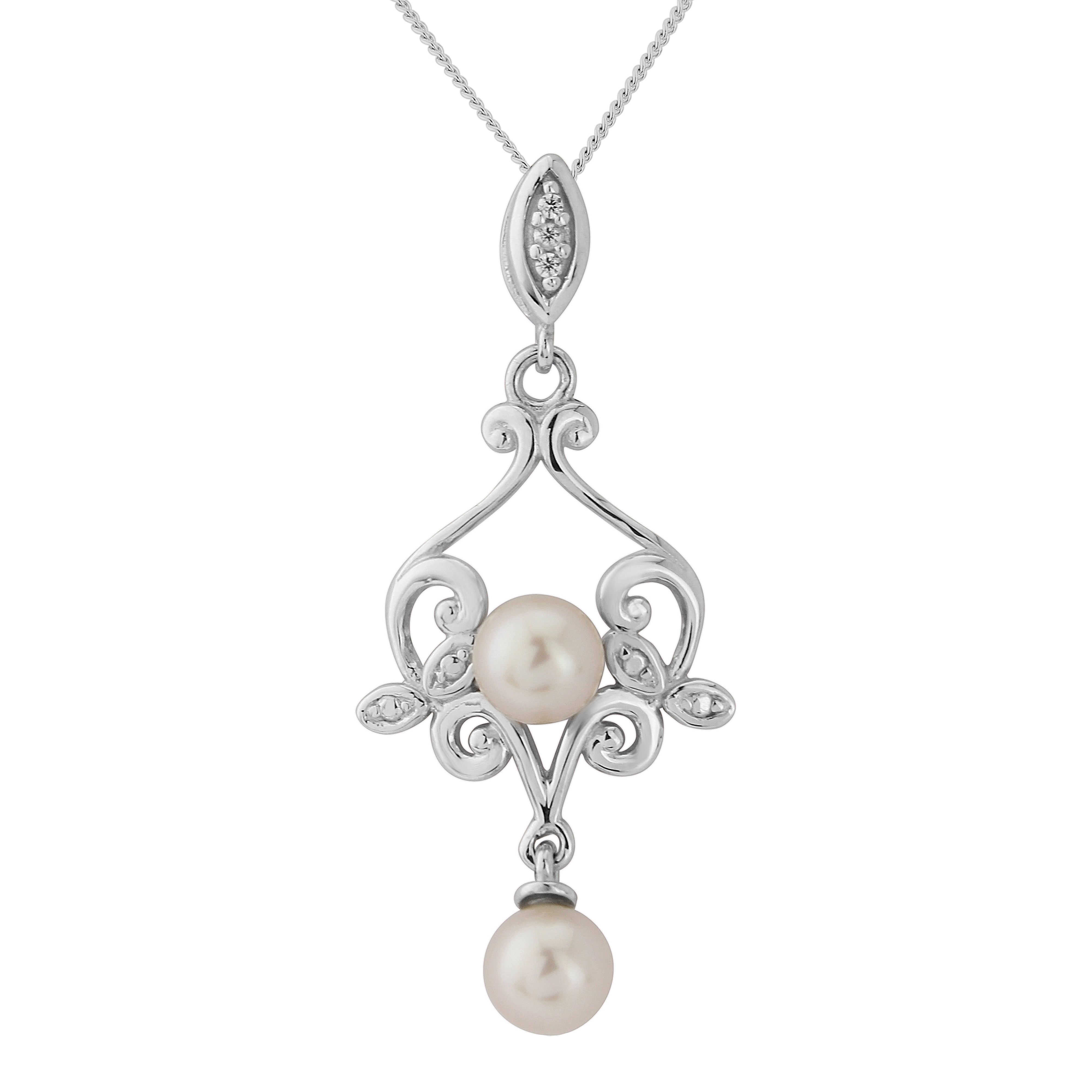 9ct White Gold freshwater pearl & cz pendant (matching E466)