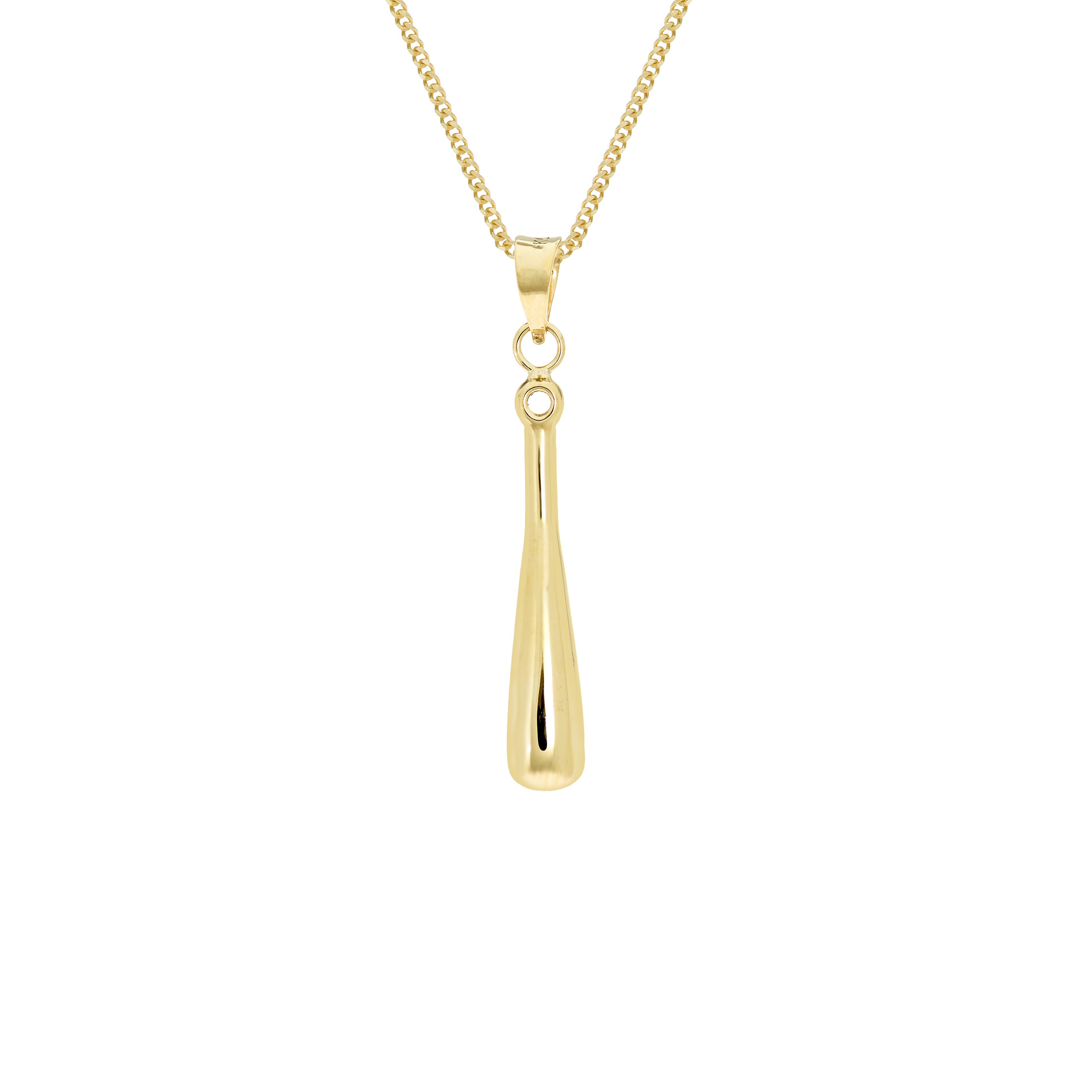 9ct Yellow Gold Pendant with Long thin tear drop 25mm drop