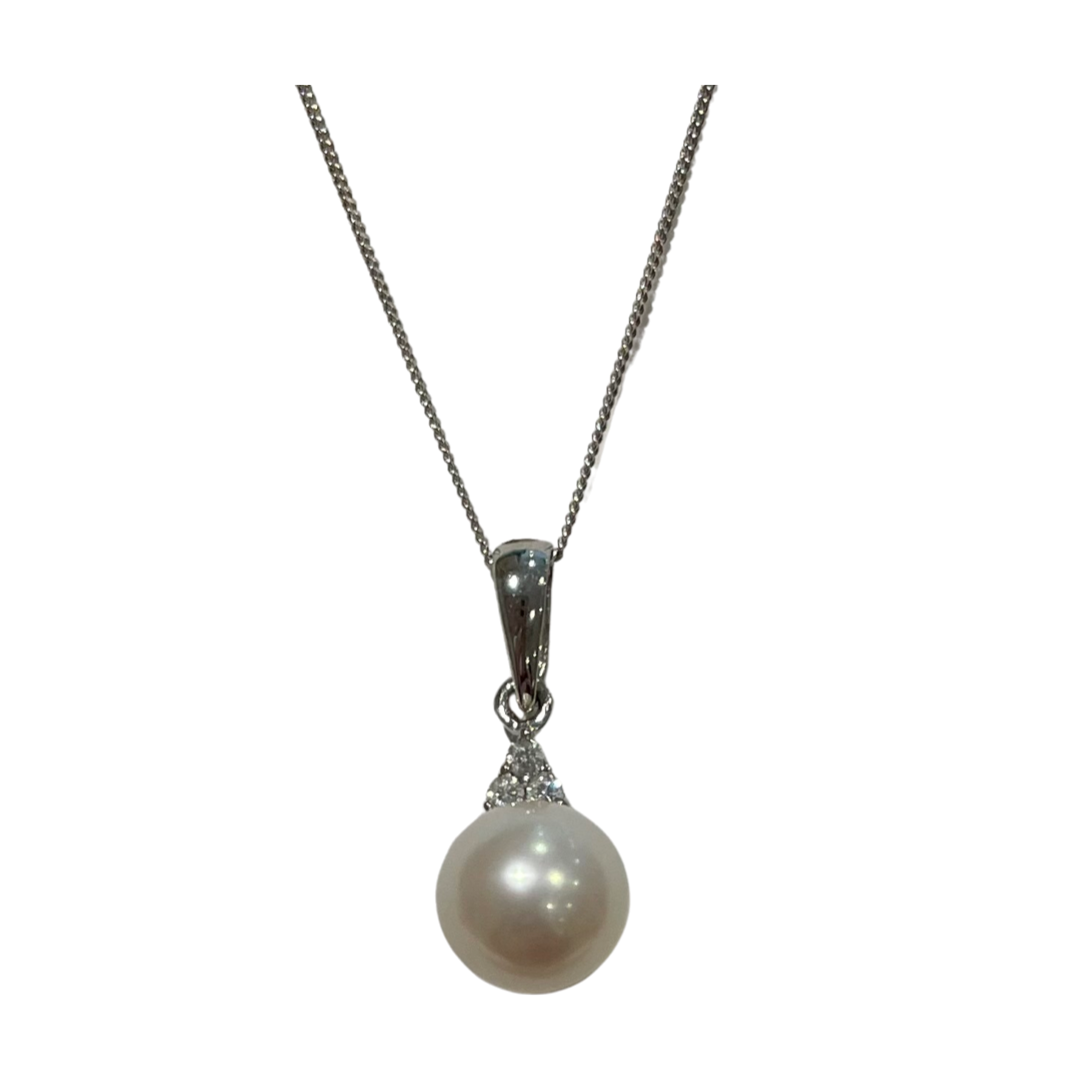 9ct White Gold Fresh water Pearl Pendant with 3 x cz top (matching E556W and R556W)