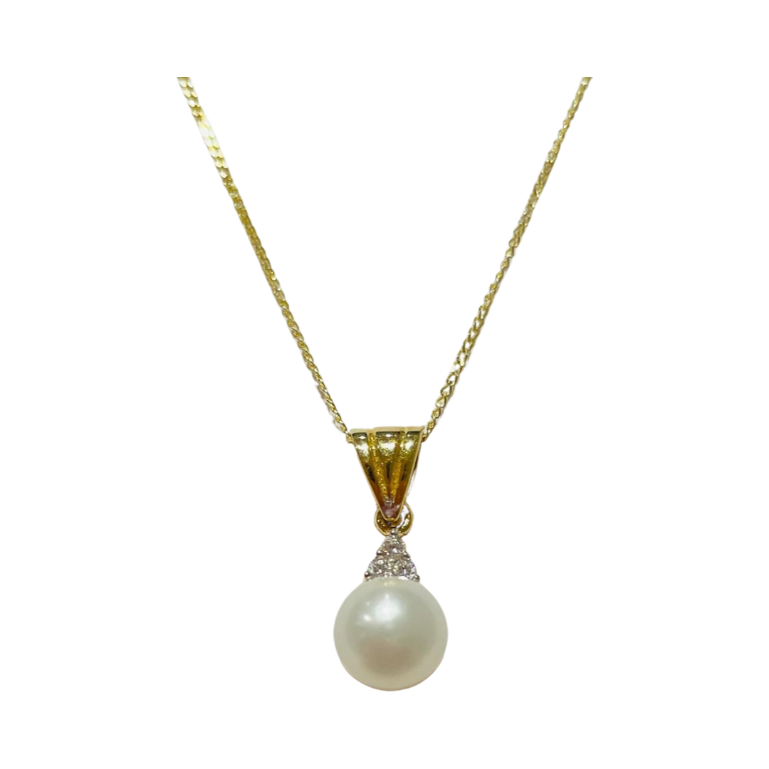 9ct Yellow Gold Fresh Water Pearl Pendant with 3 x cz top