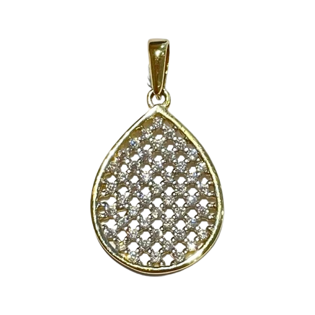 9ct Y/G Tear Drop pendant with W/G mesh CZ design E585