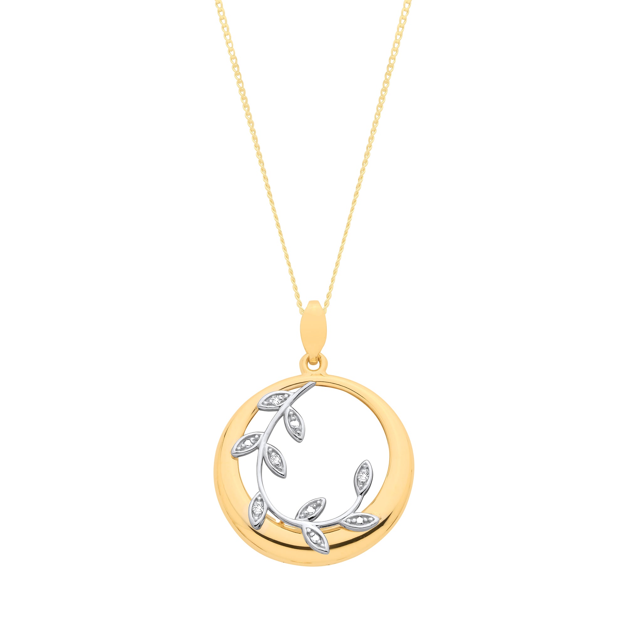 9ct Yellow and White Gold Diamond Leaf Pendant 0.02 (matching with E599)
