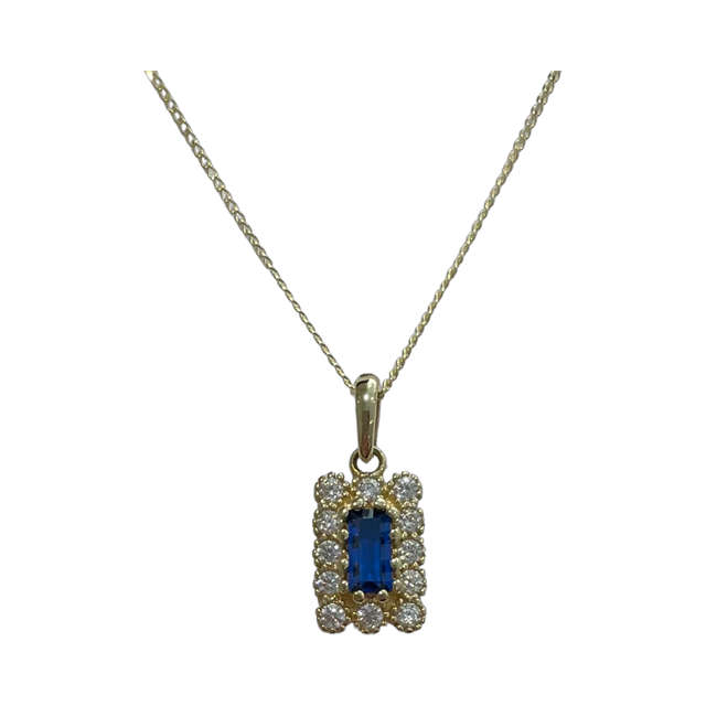 9ct Yellow Gold Blue CZ/CZ Rectangle Pant 7x15mm (matching with E638B)