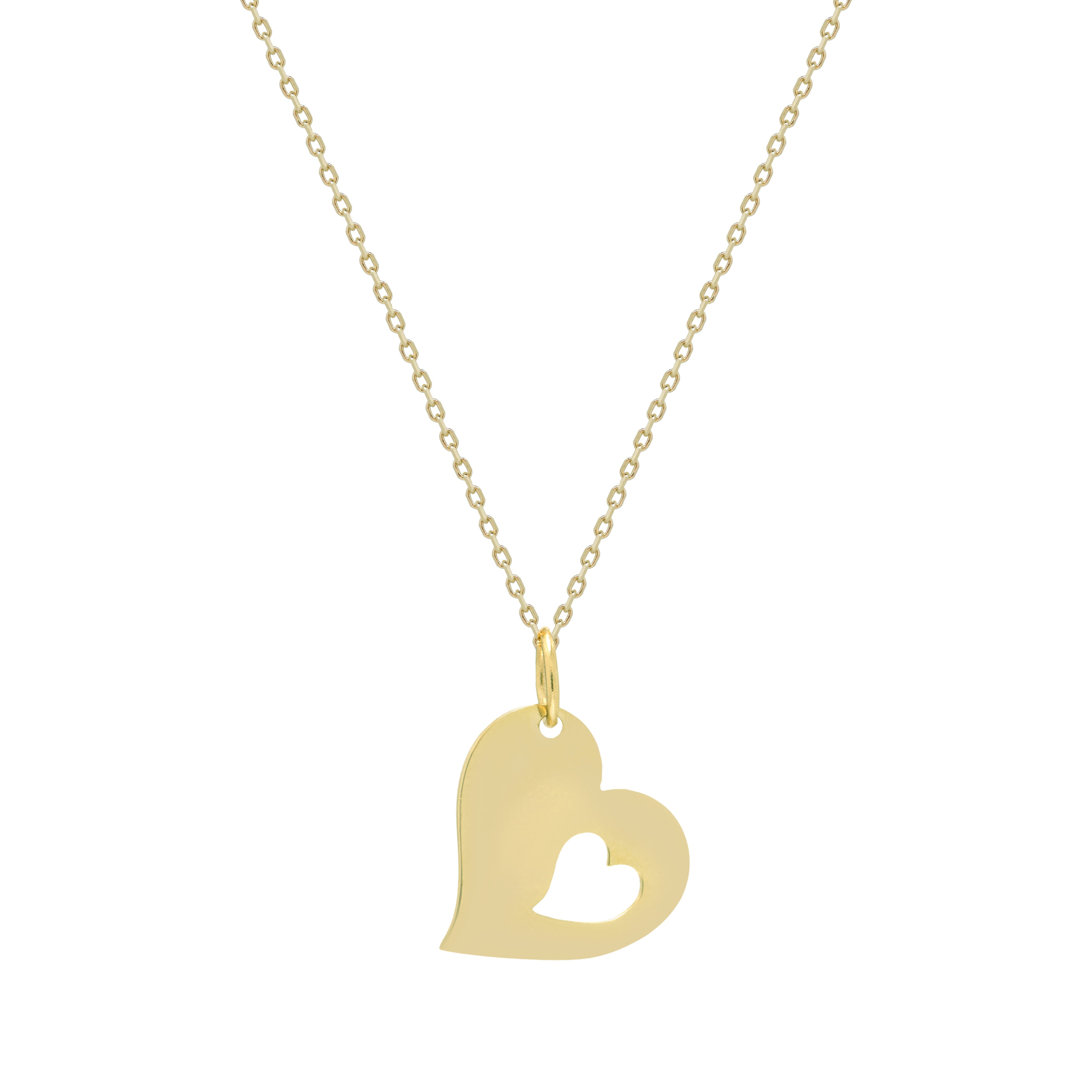 9ct Yellow gold Large heart with 1 x cut out heart Pendant
