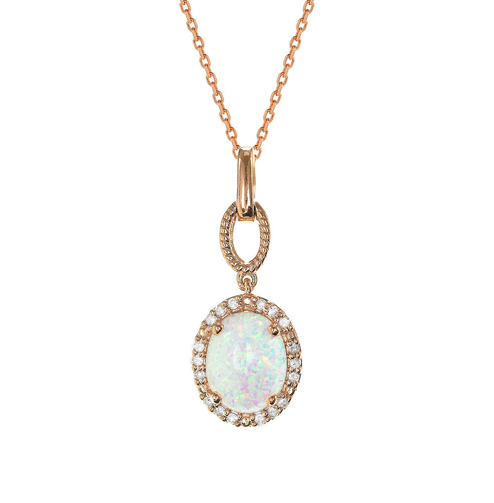 9ct R/G C.Op & Dia Pendant (C.Op 9X7) Dia 0.101ct