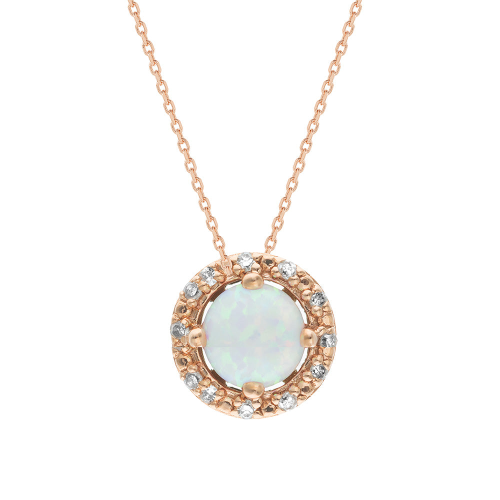 9ct R/G C.Opal& Dia Halo Pendant (C.Op7mm) Dia 0.101ct (E673