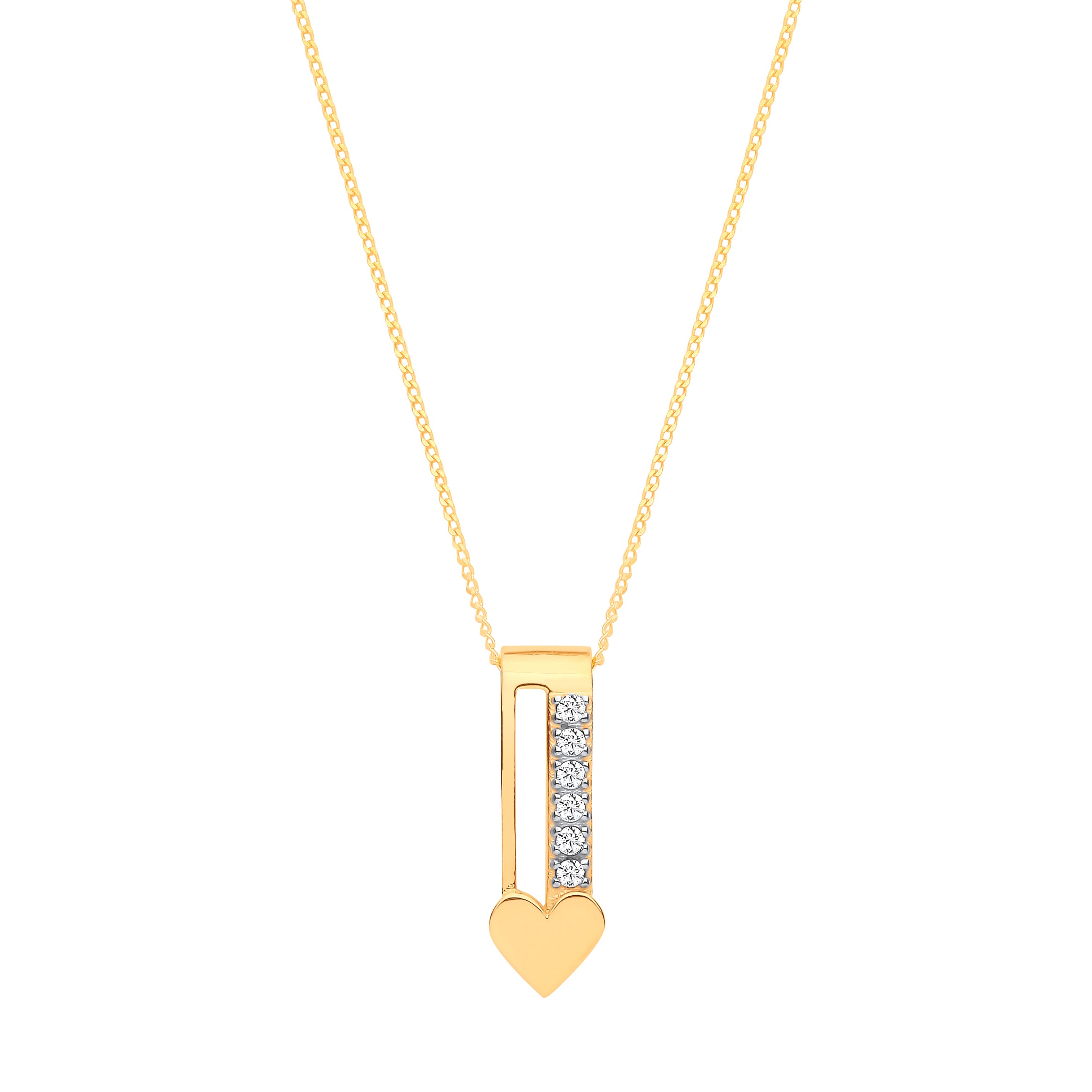 9ct Y/G bar with a row of CZ's with Heart at the bottom .Pendant