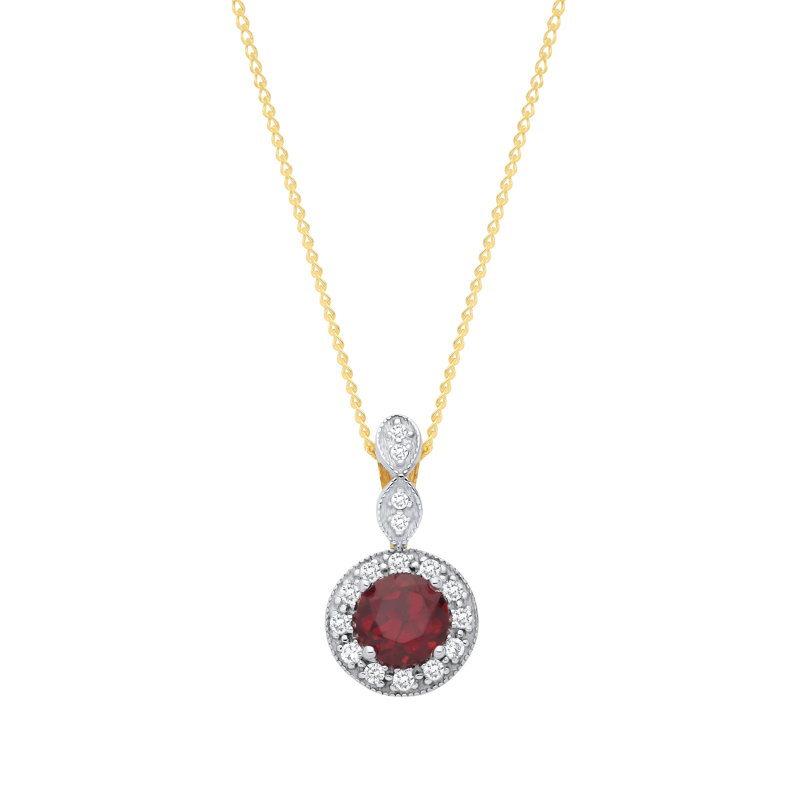 9ct Y/G garnet 0.60ct, 12+4dia - 0.088ct tot Pendant