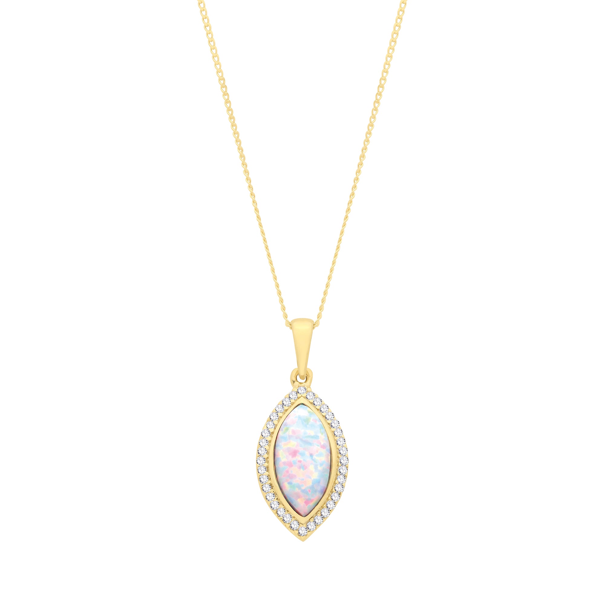 9ct Yellow gold 12*6mm C.Opal Marq pendant with cz surround