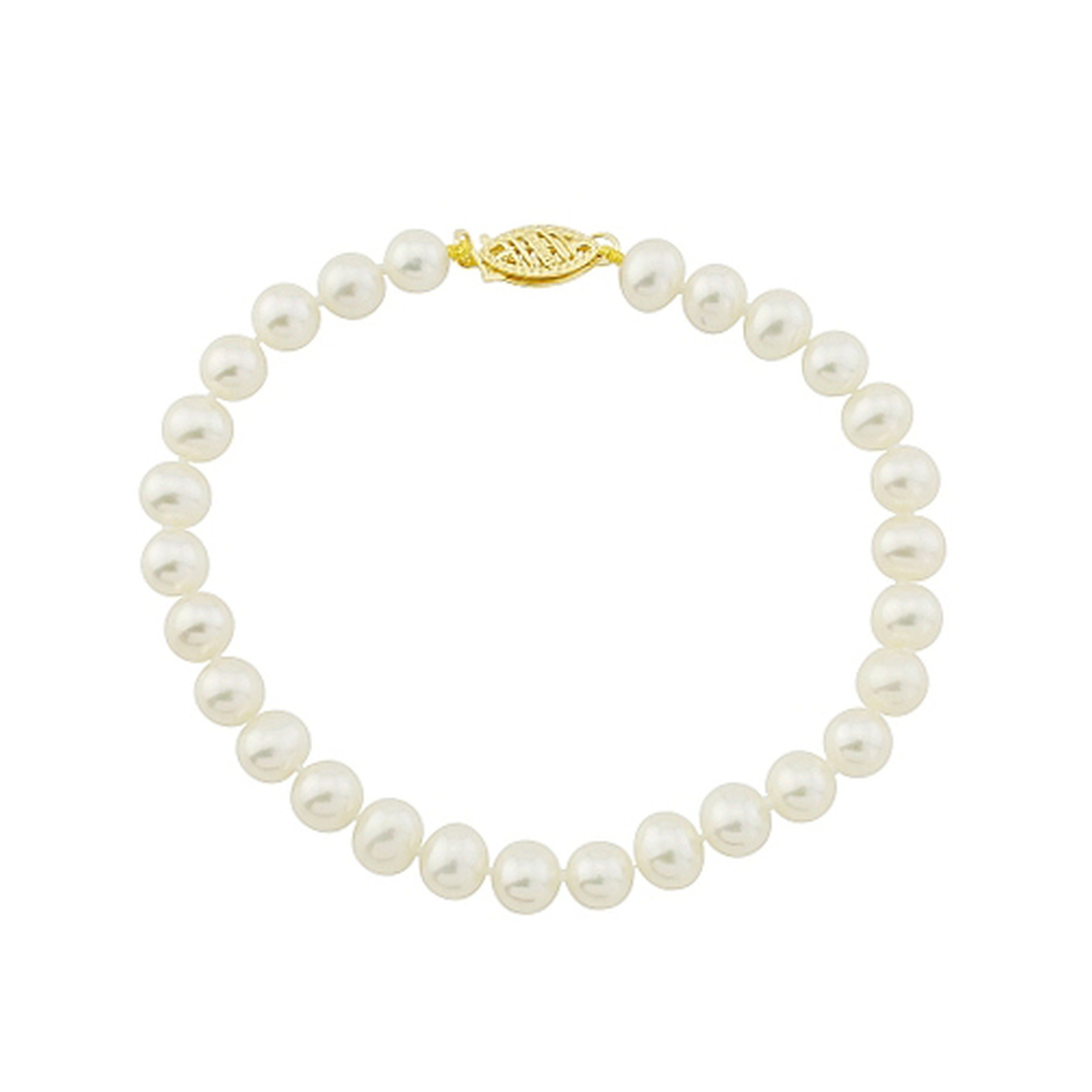 9ct Y/G Fresh Water White Pearl B'let. 5-5.5mm round.Knotted