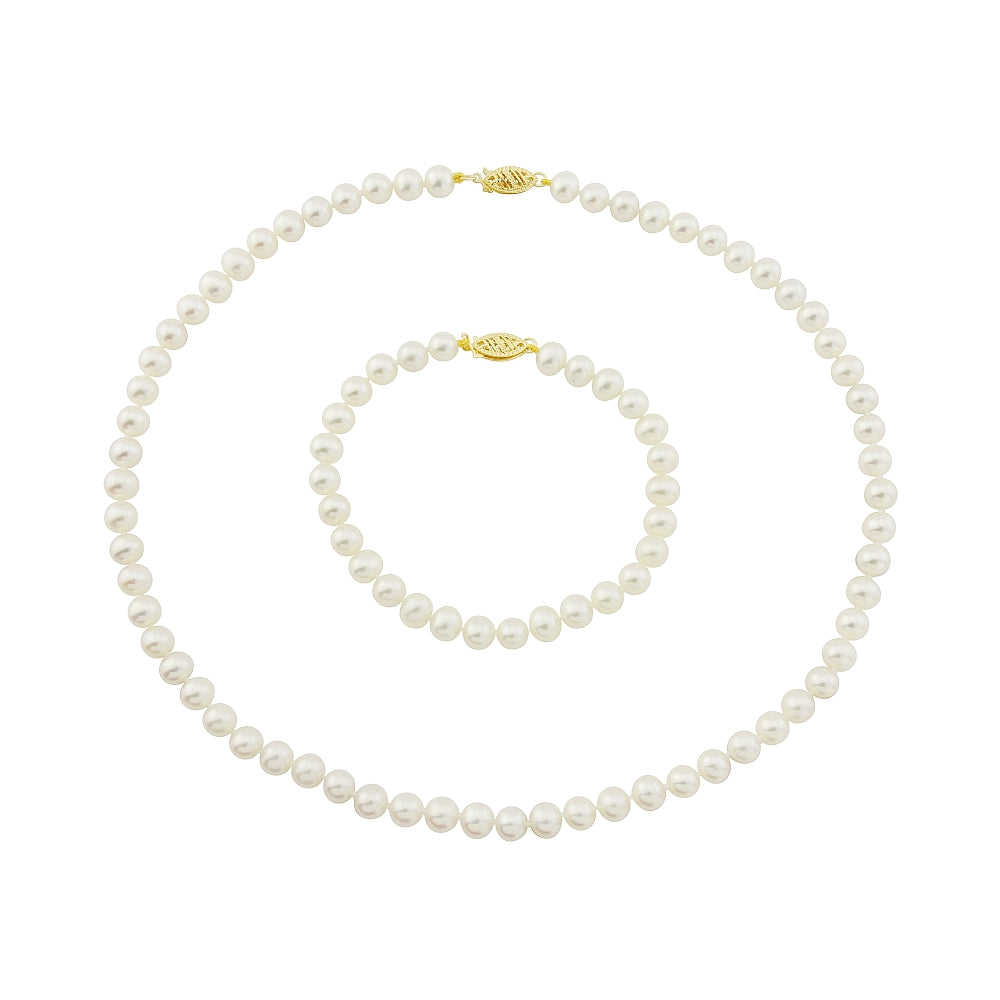 9ct Yellow Gold Fresh Water White Pearls, Knotted, 5.5mm 18"