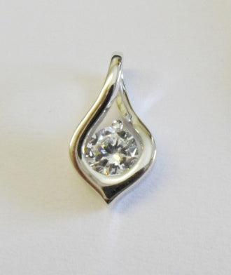 Silver Teardrop Shape Pendant with Round CZ with 18" Chain