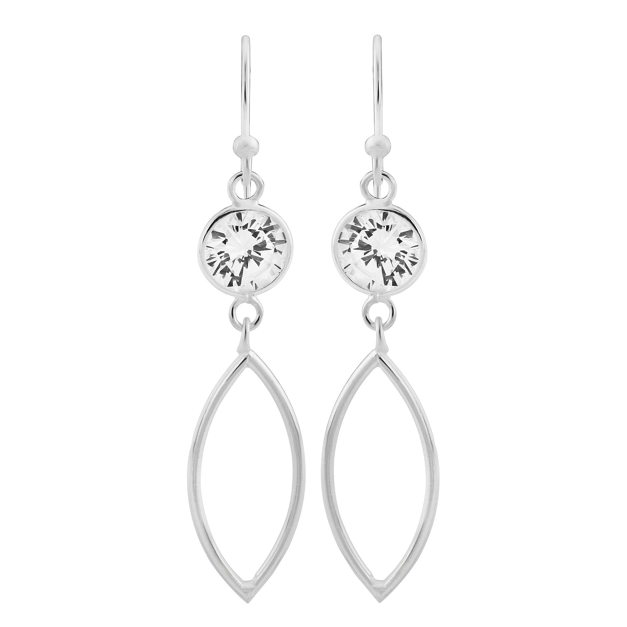 Silver Dropper Earrings with Round CZ at Top and Oval Drop