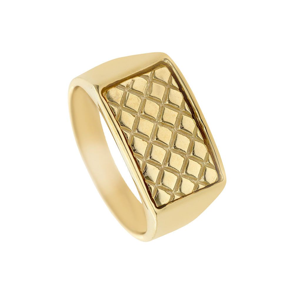 9ct Y/G rectangle diamond cut out signet ring