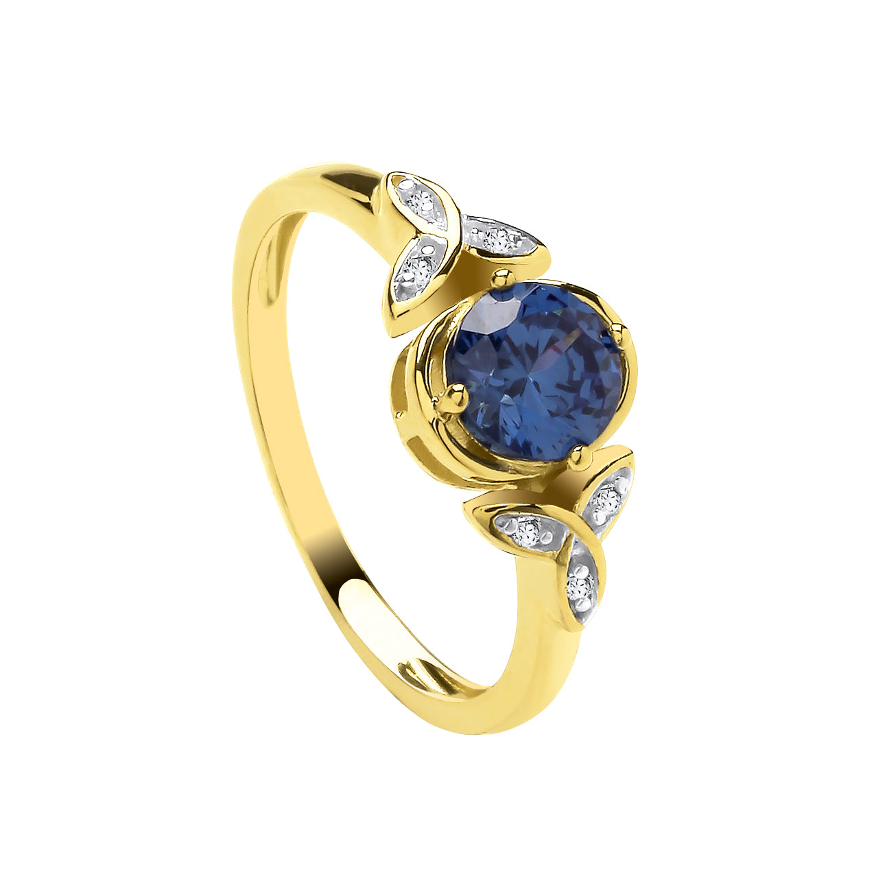 9ct Y/G Ring Dia / Blue CZ