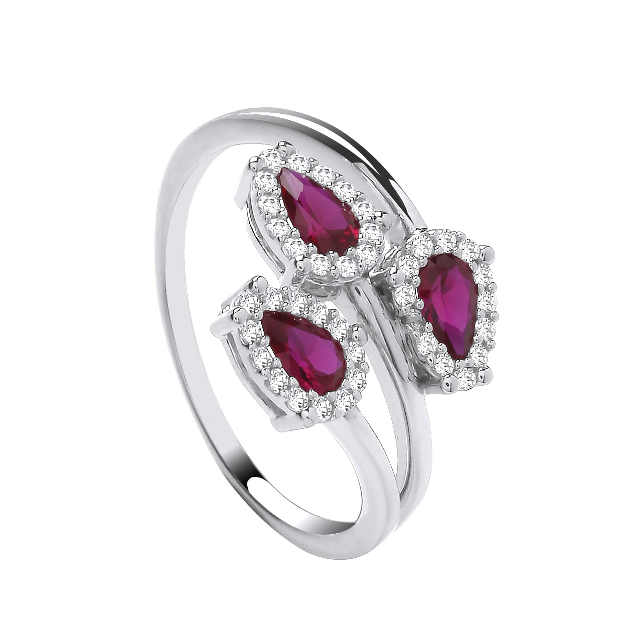 9ct white gold white and red cz ring Pear shaped x 3