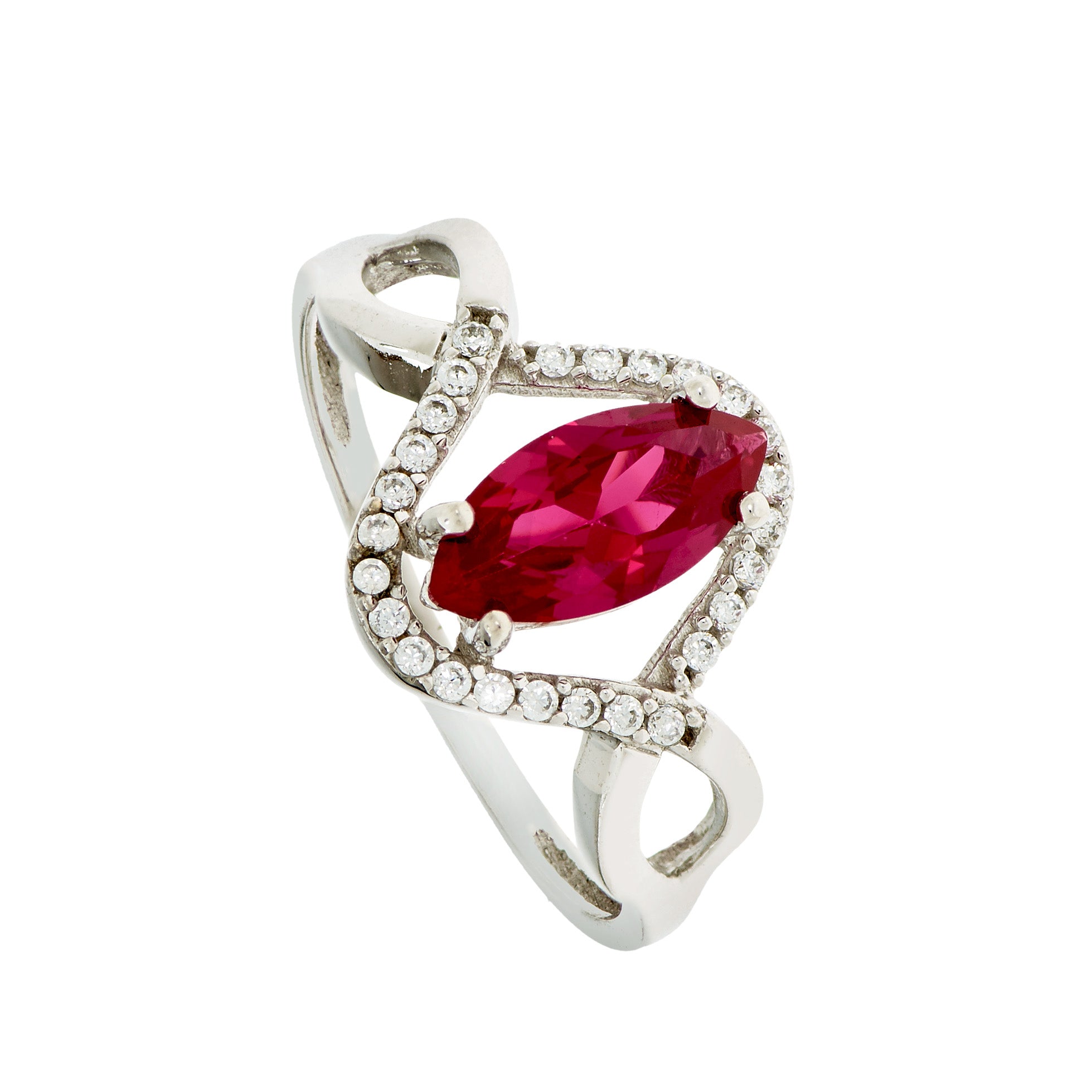 9ct White Gold Marque Synthetic Ruby with CZ Surround. Ring