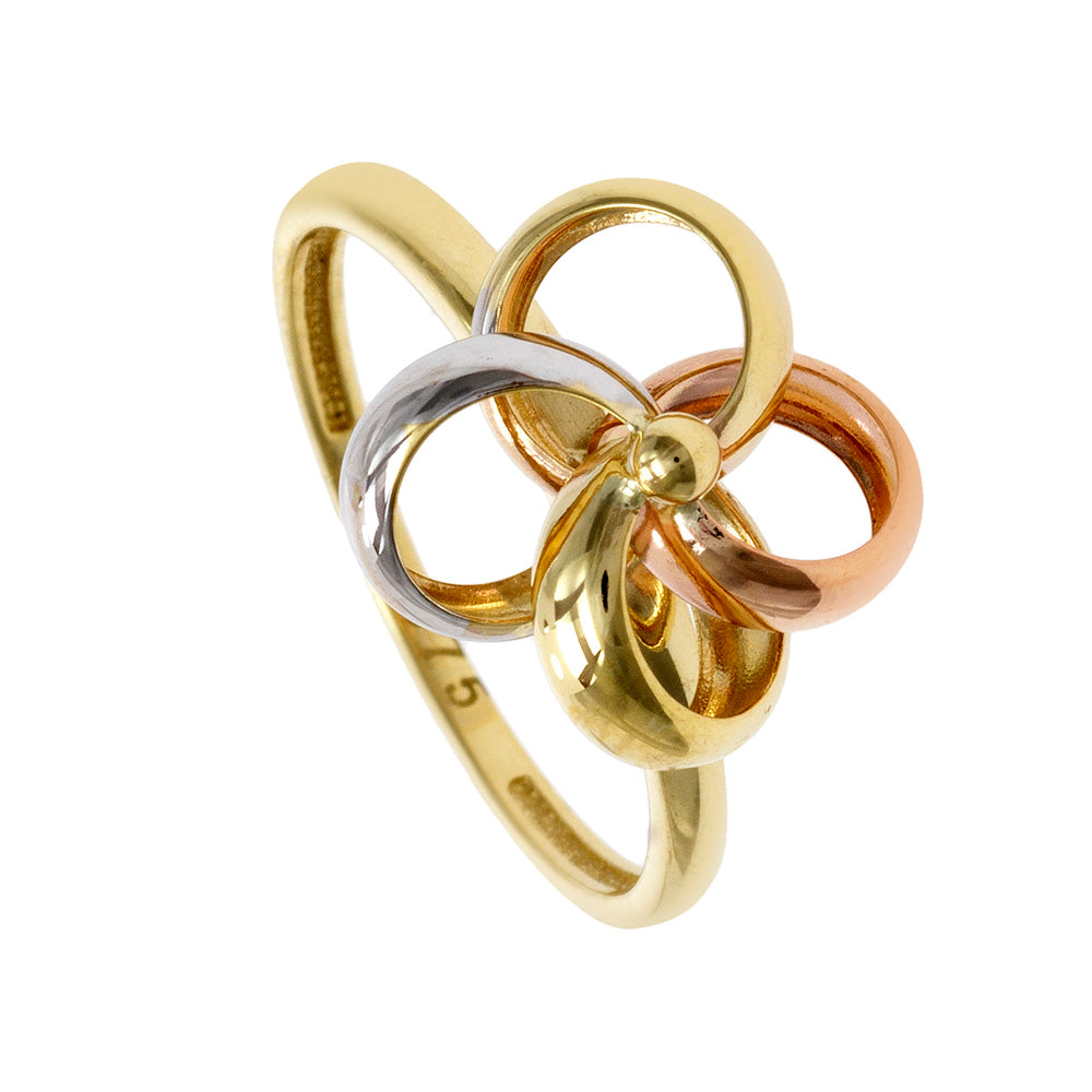 9ct Tri Colour raised loop flower ring