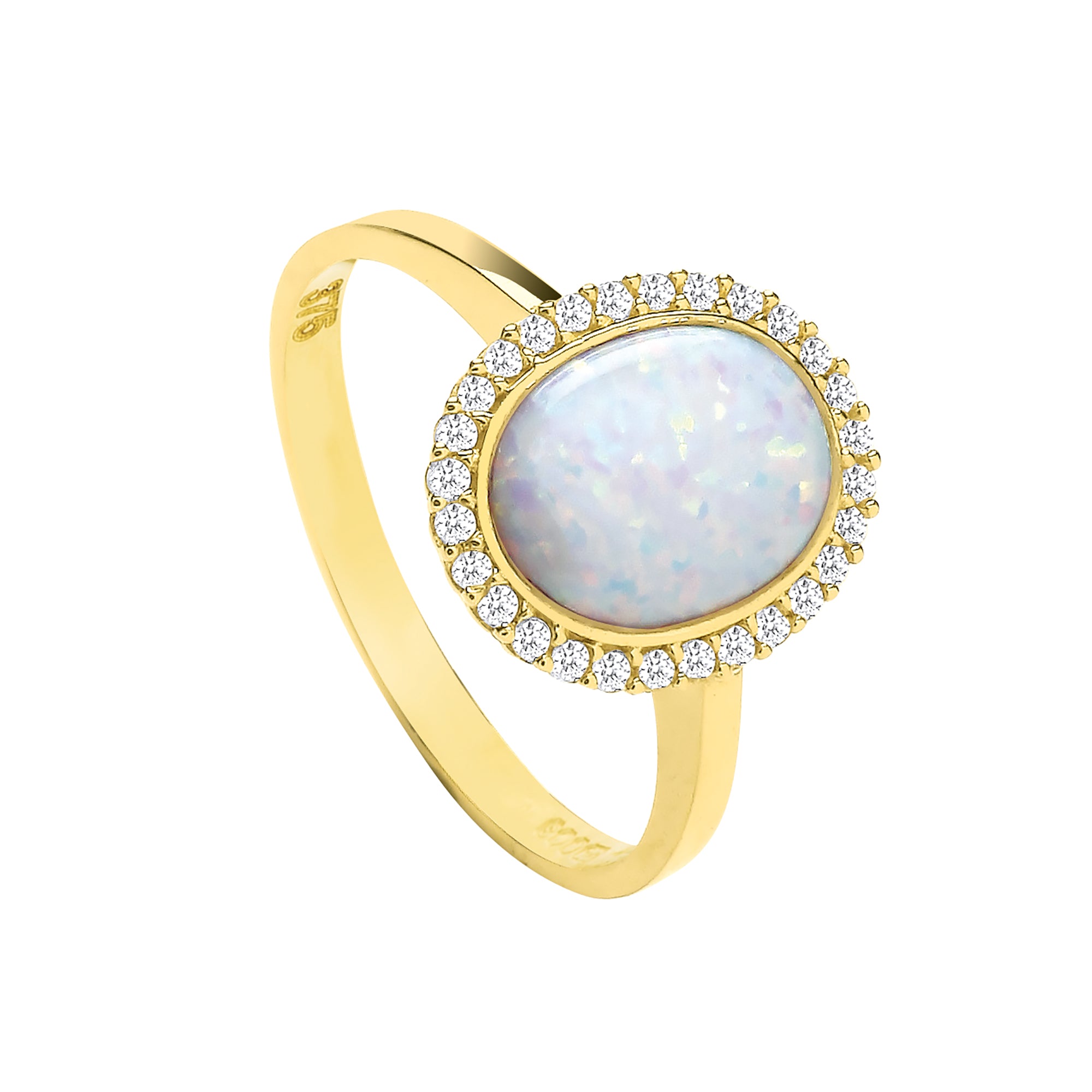9ct Yellow gold oval 10*8mm C.Opal ring with cz surround