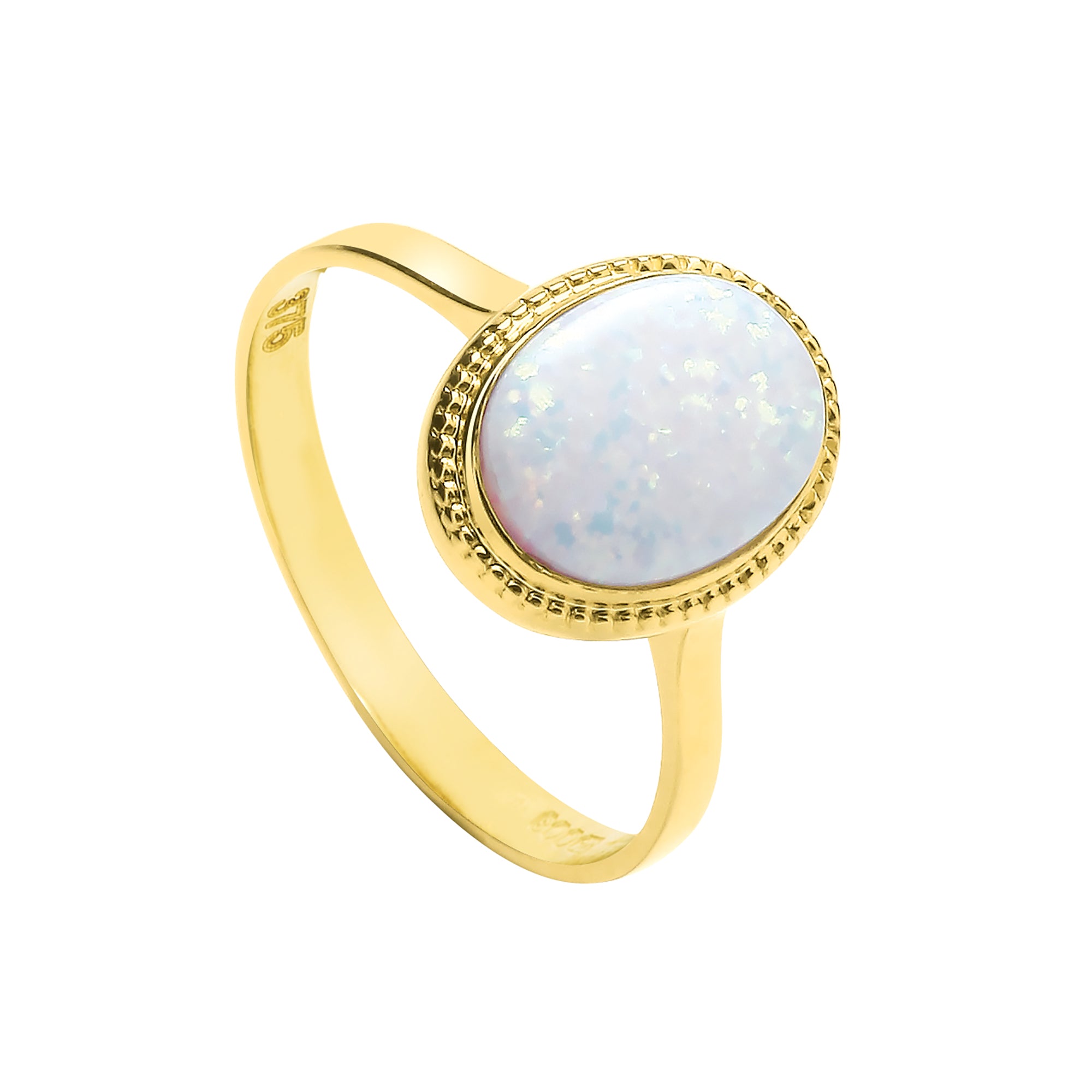 9ct Yellow gold oval C.Opal 10*8mm with beaded edge ring