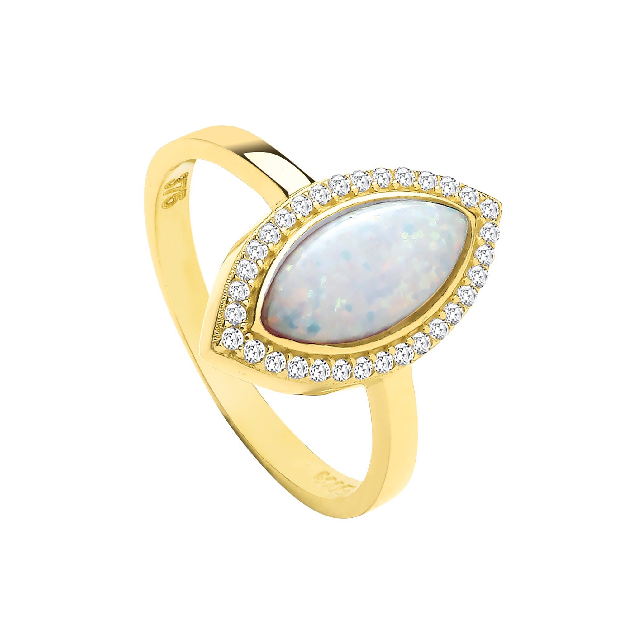 9ct Yellow gold 12*6mm C.opal Marq ring with cz surround