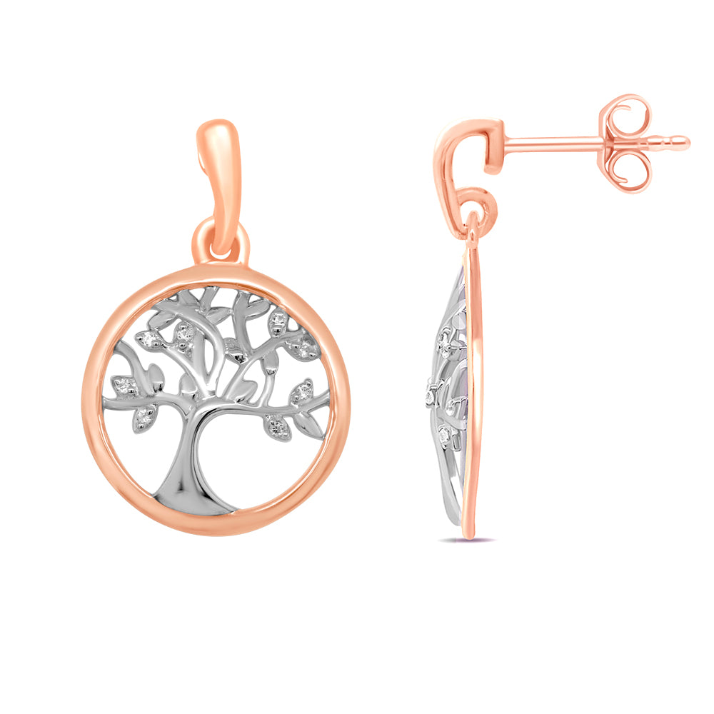 9ct R/G & W/G Diamond 0.02ct Tree of life Drops