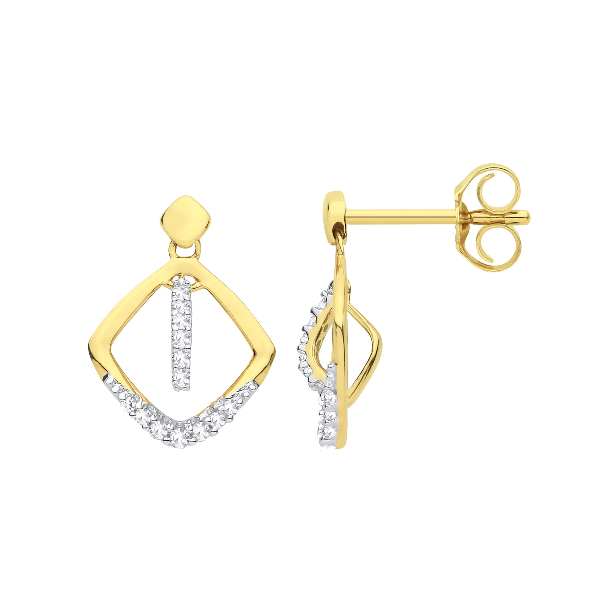 9ct Y/G Double Sqare dropper with Dia, 0.12ct
