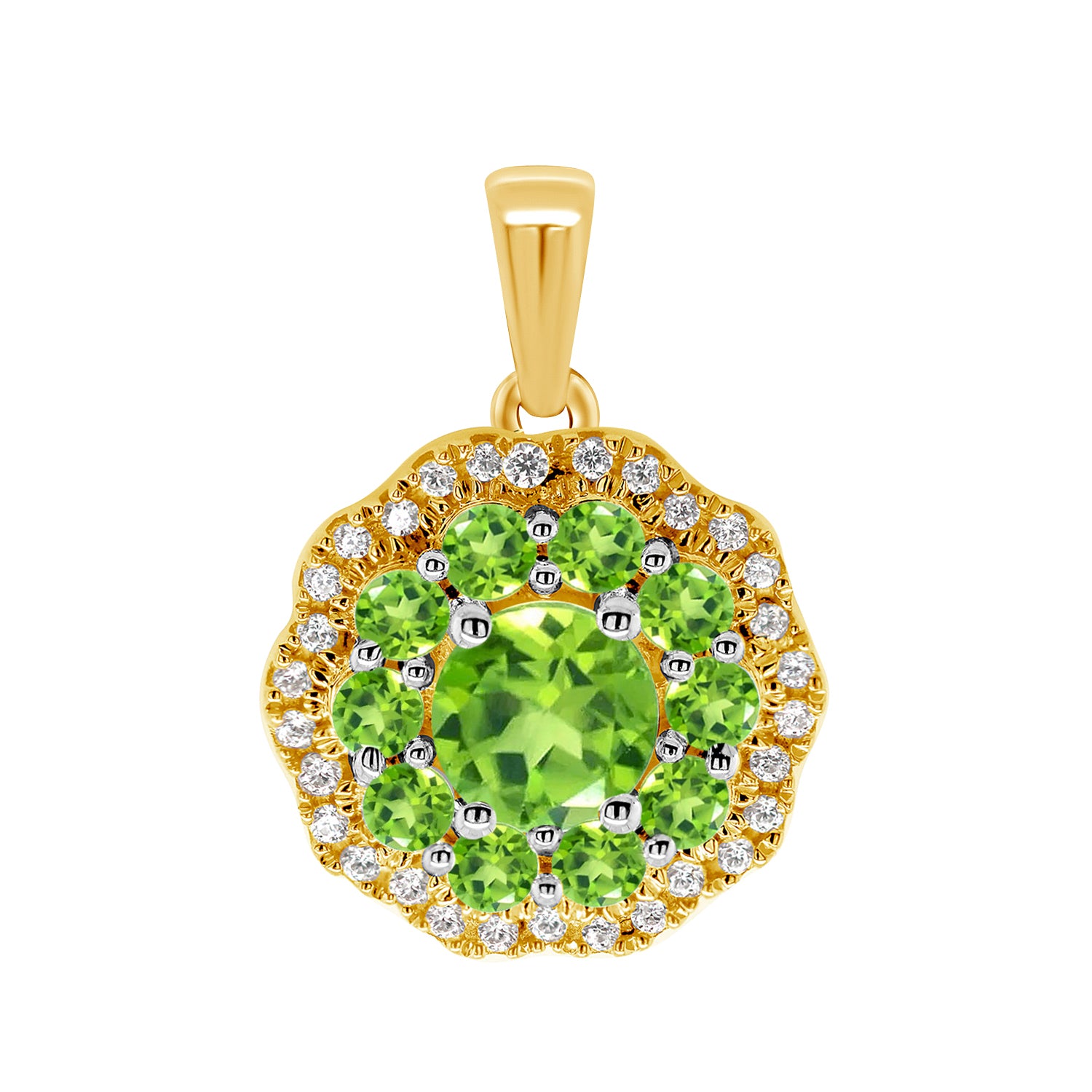 9ct Y/G flower Pendant, dia0.12ct, peridot 0.83ct SI1/2G/H