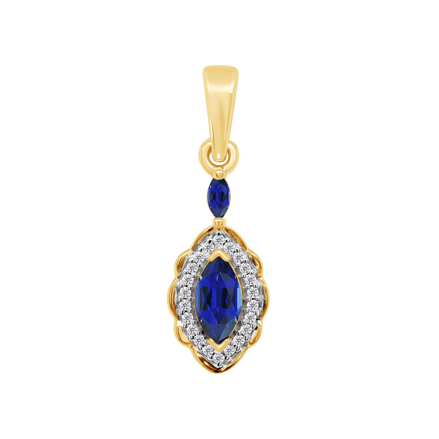 9ct Y/G marquise shape -Sapphire 0.41ct, diamond 0.04ct Pendant Recycled Gold