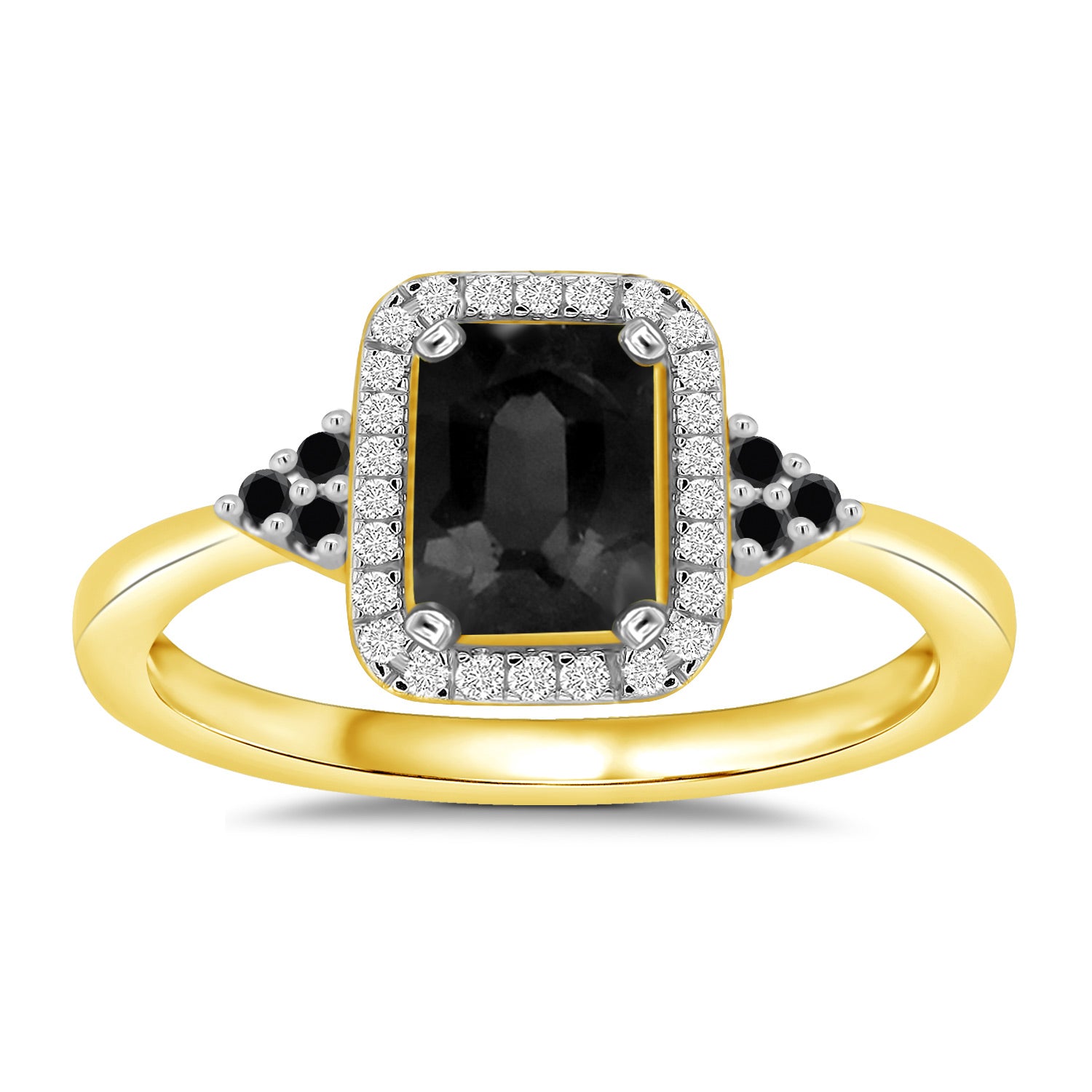 9ct Yellow Gold - Black Sapphire 0.76 & Diamond 0.05