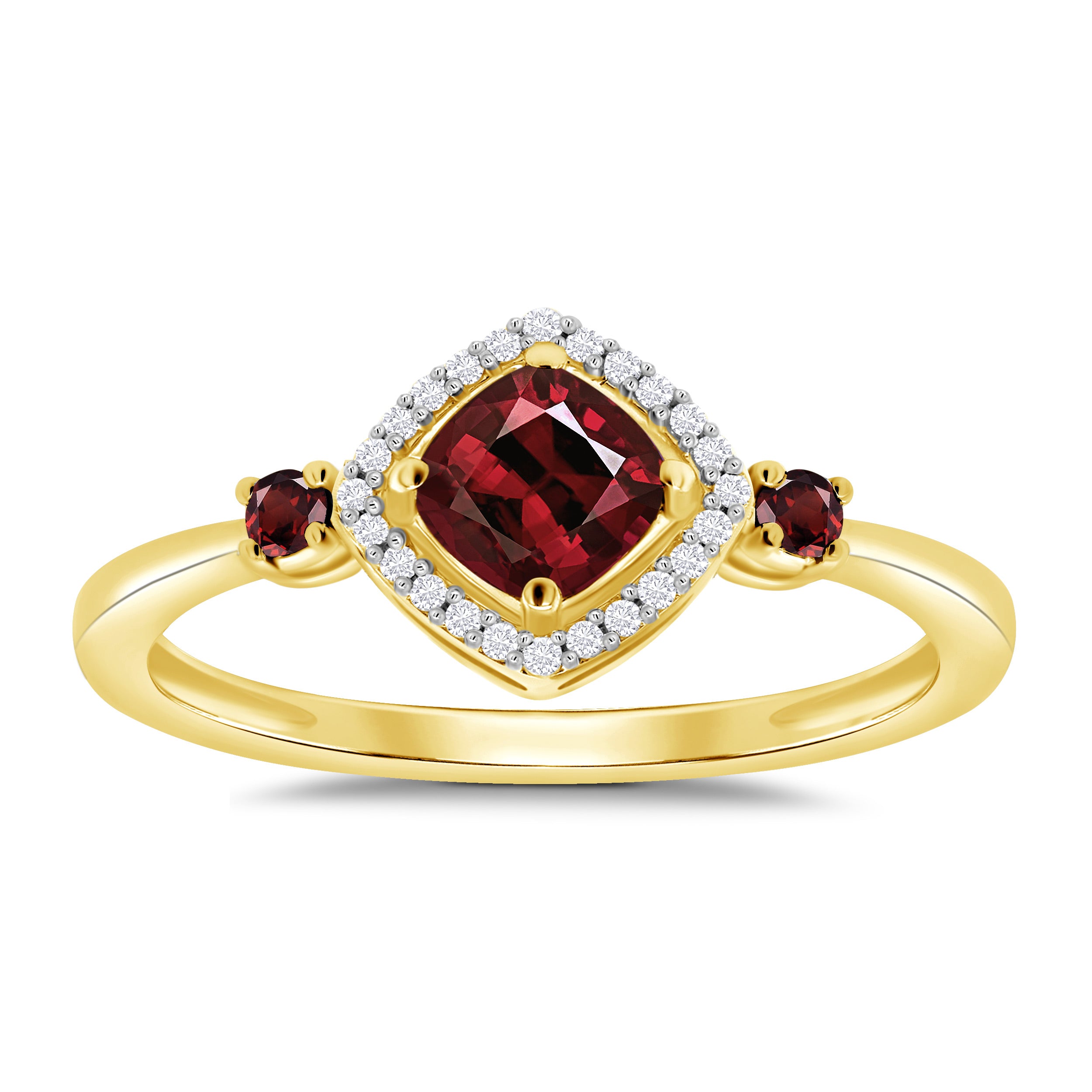 9ct Yellow Gold - Garnet & Diamond