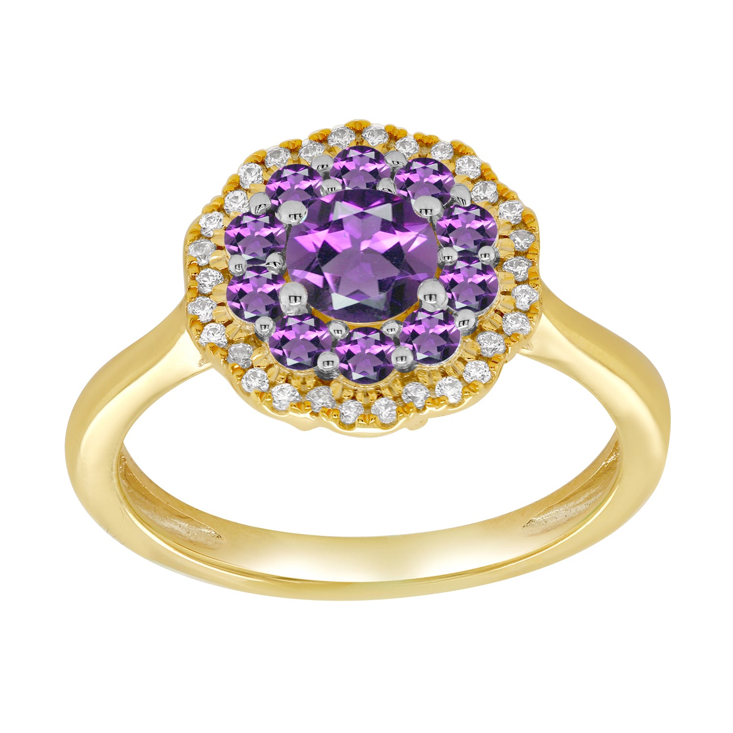 9ct Y/G Dia 0.12ct , Amethsyt 0.70ct flower Ring SI1/2 G/H