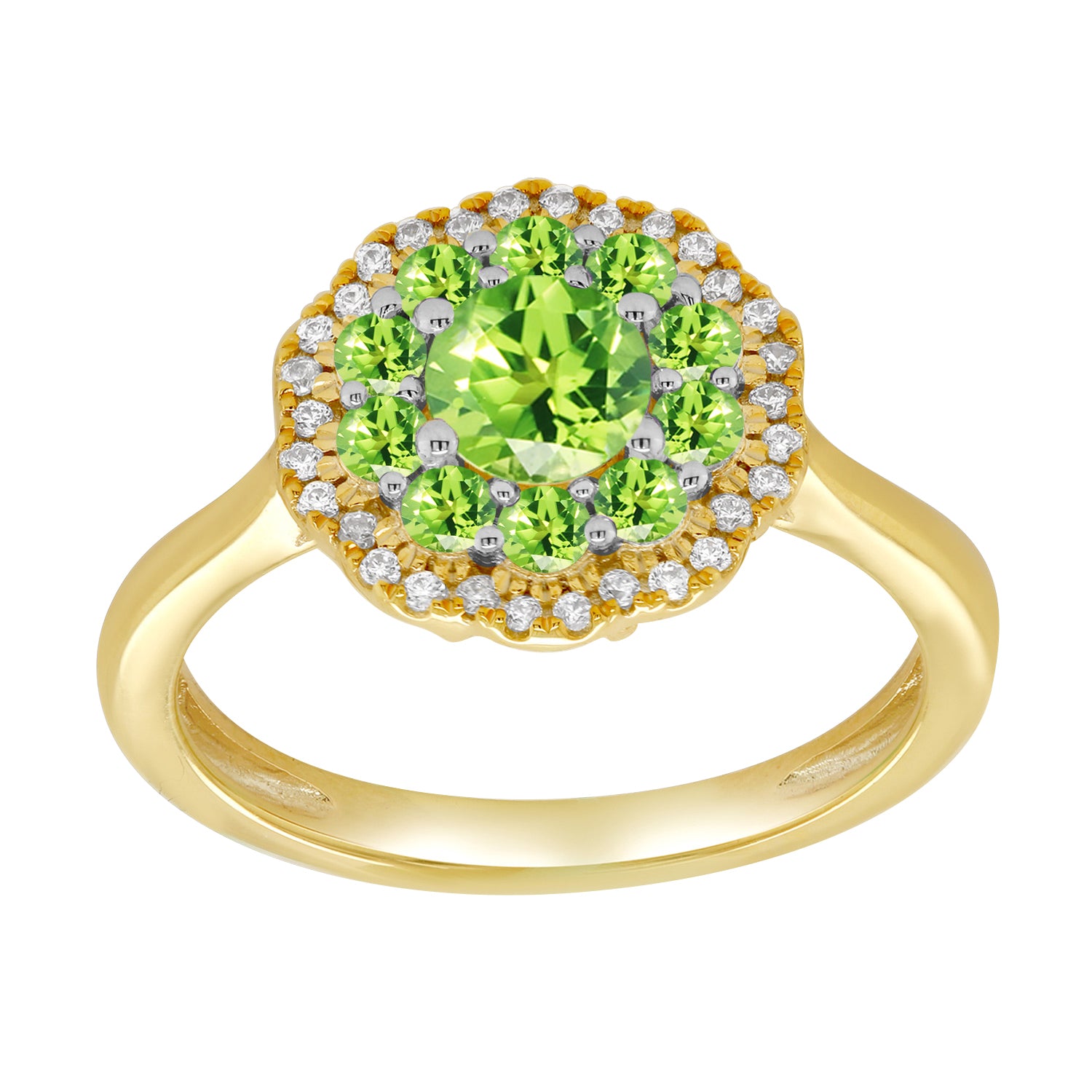 9ct Y/G Dia 0.12ct , Peridot 0.83ct flower Ring SI1/2 G/H