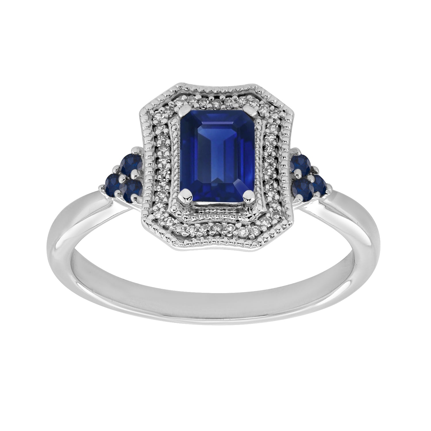 9ct W/G Sheild Ring, dia 0.06, sapphire 0.82ct SI1/2 G/H