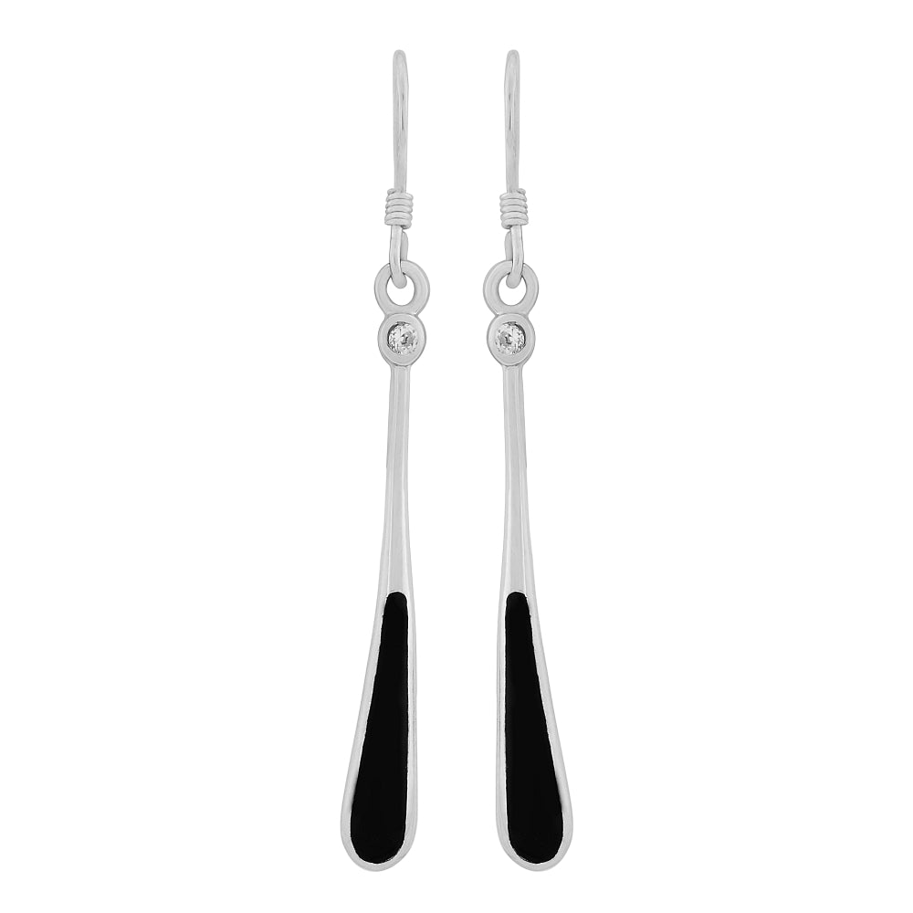 Silver long bar Drop Earrings with Black Stone matching SPD153