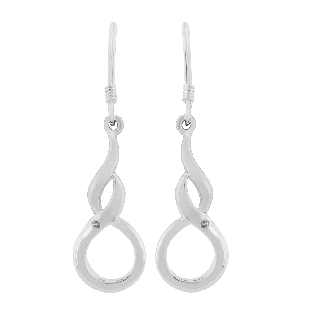 Silver figure of 8 Earrings with 1 cz in each